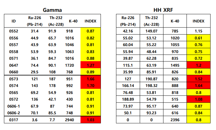 ¢Ã ¹æ»ç´É Index [ U(Ra ȯ»ê), Th, K40 ] ÃøÁ¤ ¹× ¹æ»ç´É Index°ª ±âÁØ 0.7¿¡ ´ëÇÑ Pass/Fail ±â´É žÀç
